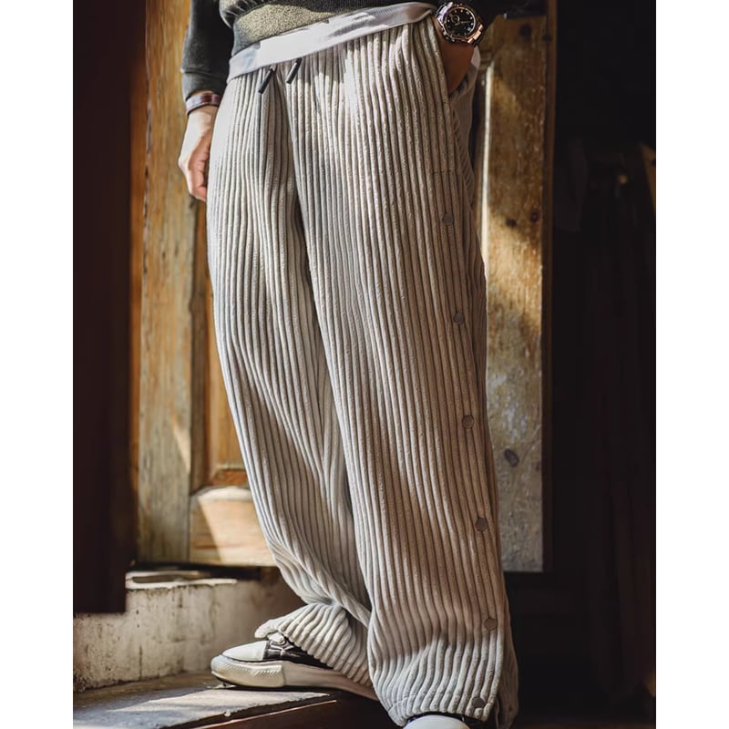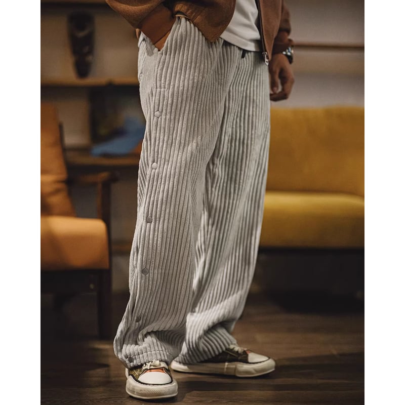 corduroy side-button straight wide-pants A1109